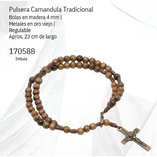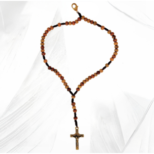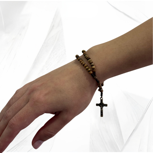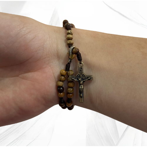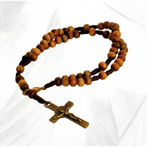 Rosario madeira IMBUIA, madera muy valorada en Brasil por su alta calidad, durabilidad, resistencia a plaga y humedad, a su vez resalta su su distintivo color marrón con su variación de colores oscuros y matices rojizos o amarillos.